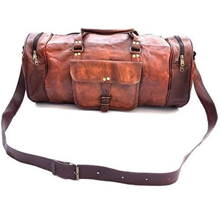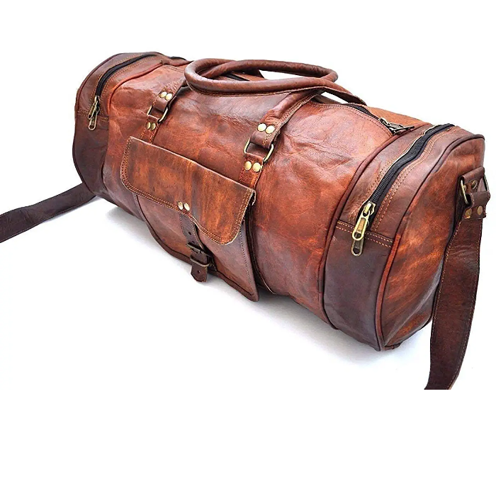 A men’s Vintage Leather Duffel Bag Travel For Men made from genuine cow leather with hand-picked with special genuine leather handles along with strap option to go on the perfect getaway. The bag is completed with exceptional lining to keep all your belongings safe while on the road. An overall soft leather bag with a large central compartment.