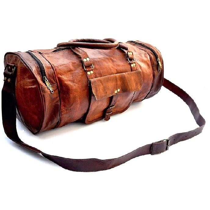 The Vintage Leather Duffel Bag Travel For Men comes in a ravishing genuine leather light brown that has a cosmic shade to die for. Different size bags are available for every need of yours. Check them all out for the perfect fit.